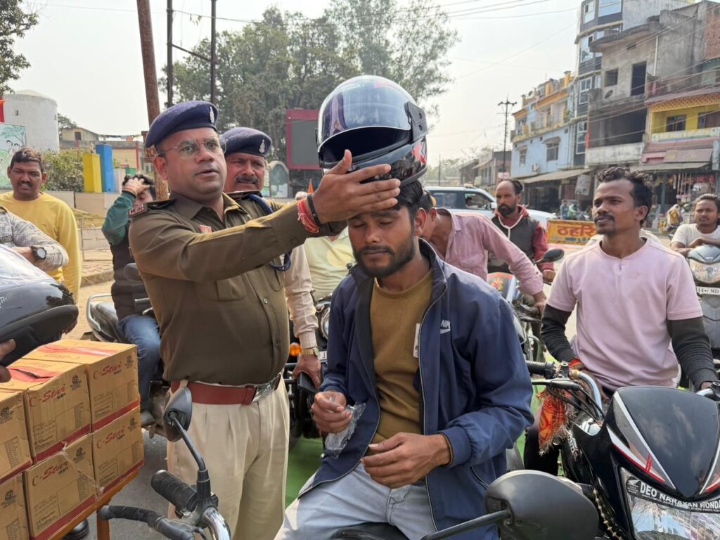 *➡️ पुलिस ने हेलमेट पहनने के प्रति प्रत्साहित करने बांटी हेलमेट*