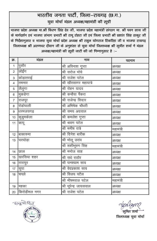 लैलूंगा। भारतीय जनता युवा मोर्चा (भाजयुमो) मंडल लैलूंगा के अध्यक्ष पद पर रोहन यादव की नियुक्ति से क्षेत्र के युवा कार्यकर्ताओं में खुशी की लहर है। संगठन के वरिष्ठ नेताओं द्वारा उनकी नियुक्ति की घोषणा के बाद से बधाई देने वालों का तांता लगा हुआ है।
