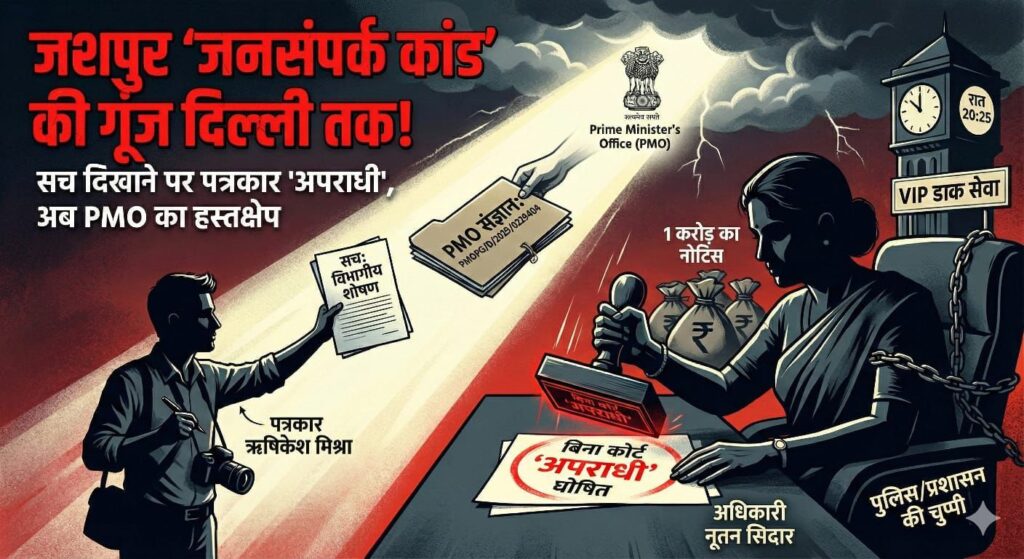 *जशपुर ‘जनसंपर्क कांड’ की गूंज दिल्ली तक: सच दिखाने पर पत्रकार को बिना कोर्ट के घोषित किया ‘अपराधी’, 1 करोड़ के नोटिस के बाद अब PMO ने लिया संज्ञान…*