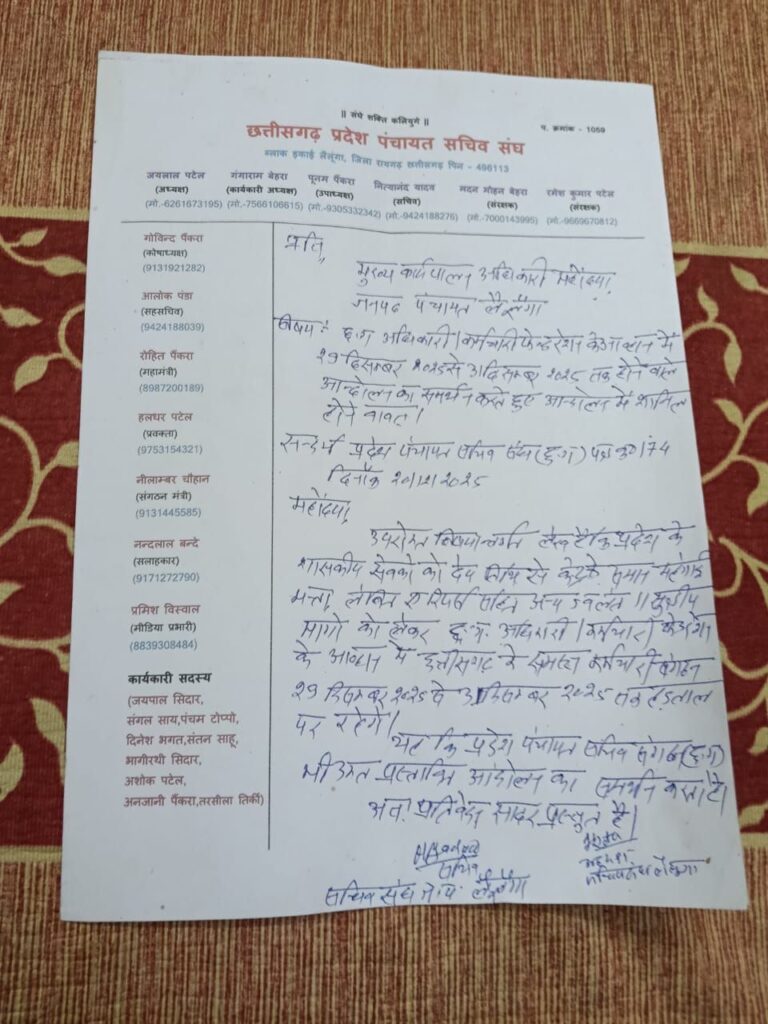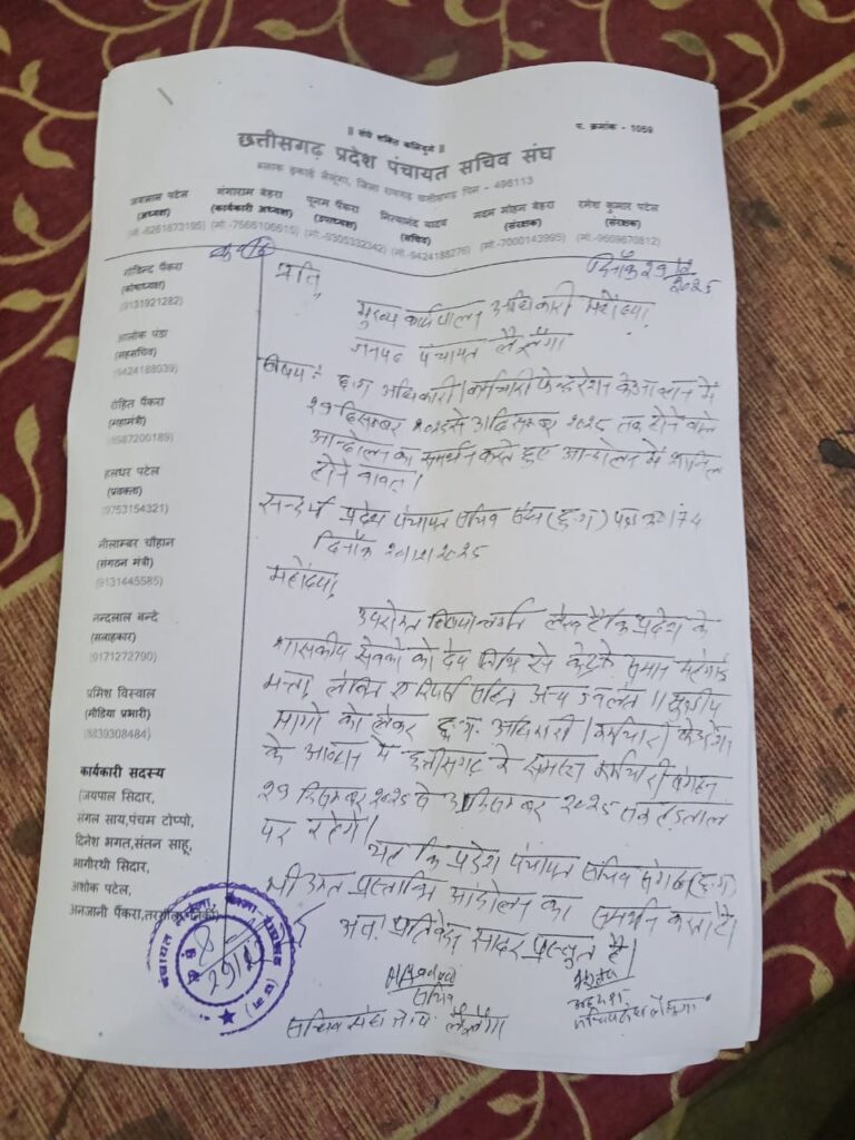 *मुख्य मांगें और आंदोलन की रूपरेखा :*पंचायत सचिव संघ द्वारा सौंपे गए पत्र के अनुसार, कर्मचारी लंबे समय से अपनी जायज मांगों को लेकर संघर्षरत हैं। उनकी प्रमुख मांगों में शामिल हैं: