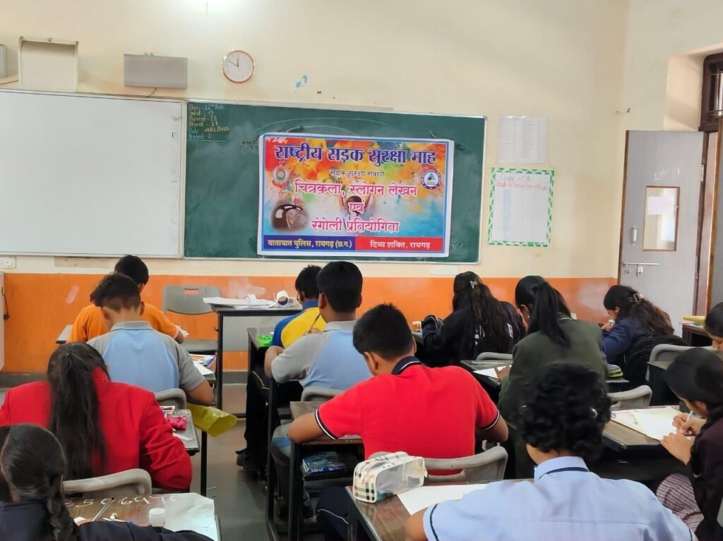 *रायगढ़, 11 जनवरी* ।पुलिस अधीक्षक श्री दिव्यांग कुमार पटेल के दिशा-निर्देशन एवं अतिरिक्त पुलिस अधीक्षक श्री अनिल कुमार सोनी, डीसीपी ट्रैफिक श्री उत्तम प्रताप सिंह के मार्गदर्शन में यातायात पुलिस रायगढ़ द्वारा नटवर स्कूल प्रबंधन एवं समाजसेवी संस्था दिव्य शक्ति के सहयोग से सड़क सुरक्षा जागरूकता अभियान के अंतर्गत सड़क सुरक्षा विषय पर आधारित चित्रकला, स्लोगन लेखन एवं रंगोली प्रतियोगिता का आयोजन किया गया। प्रतियोगिता सीनियर एवं जूनियर वर्ग में संपन्न हुई, जिसमें शहर के 16 शैक्षणिक संस्थानों के कुल 385 स्कूली छात्र-छात्राओं ने उत्साहपूर्वक सहभागिता की।